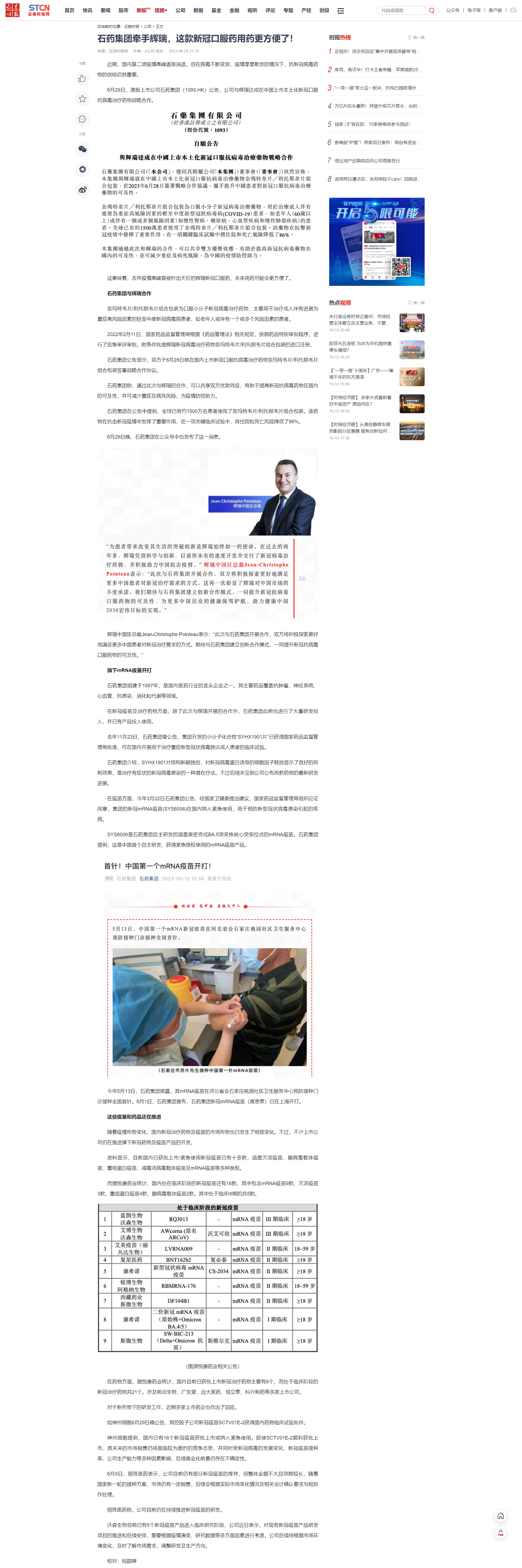 在新冠疫苗及治療藥物方面,除了此次與輝瑞開展的合作外,石藥集團此前也進行了大量研發(fā)投入,并已有產品投入使用。